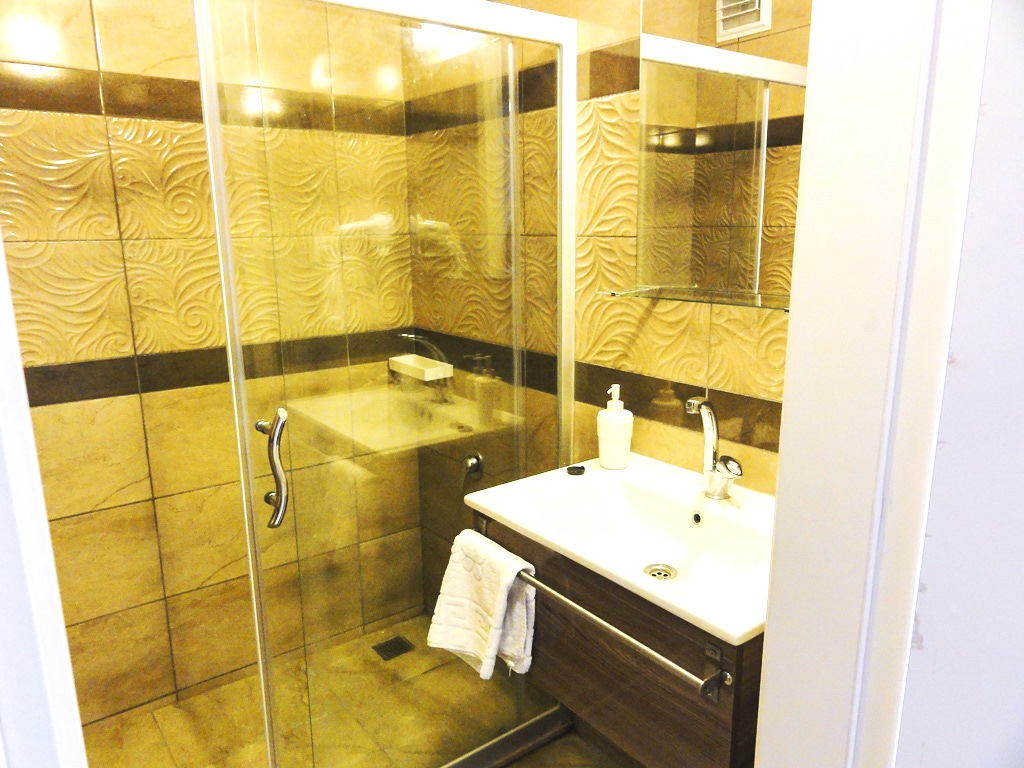Newly tiled bathrooms have shower cubicle and hair dryer. Soaps, shampoos, showers gels, and slippers are included.