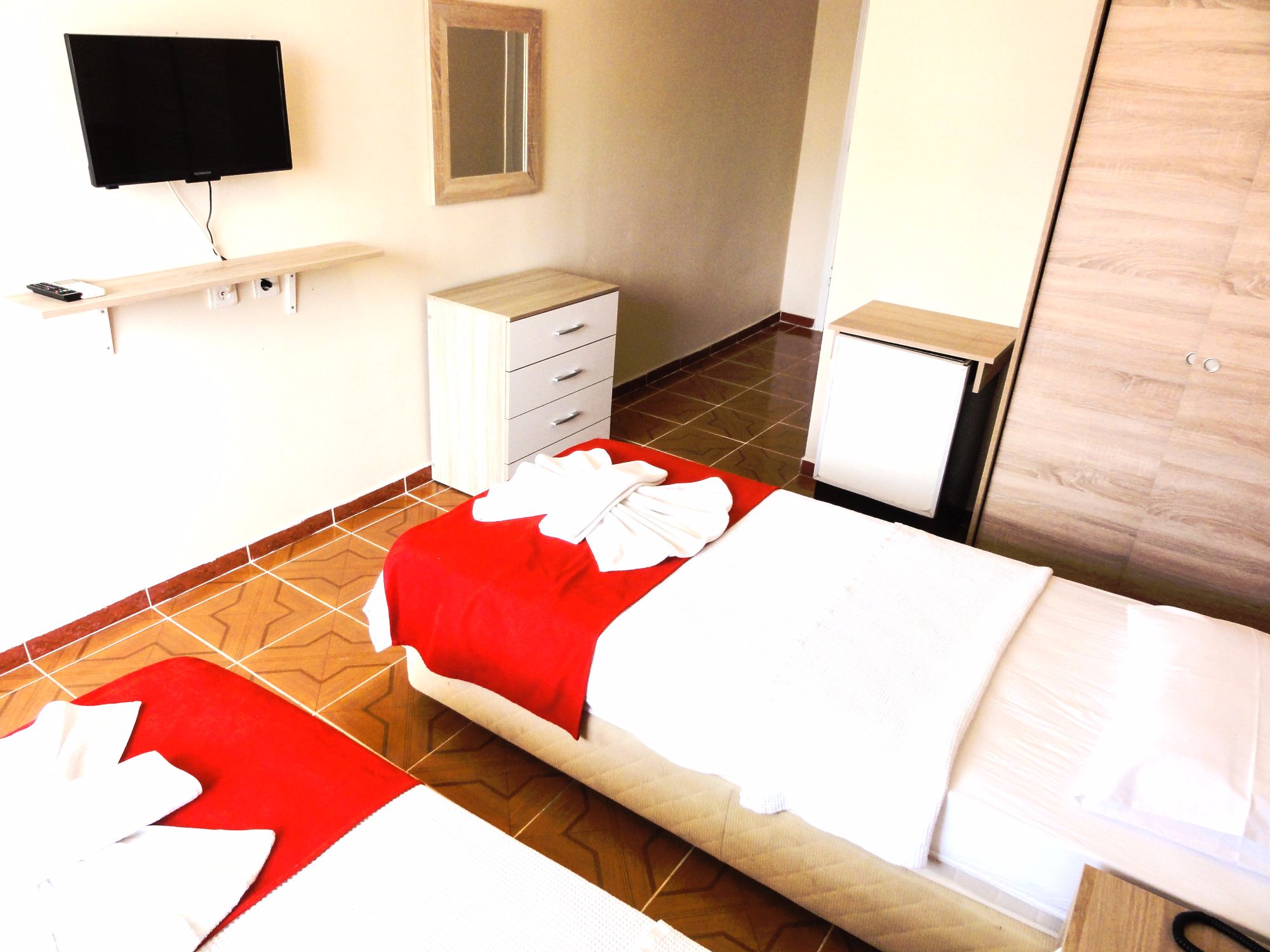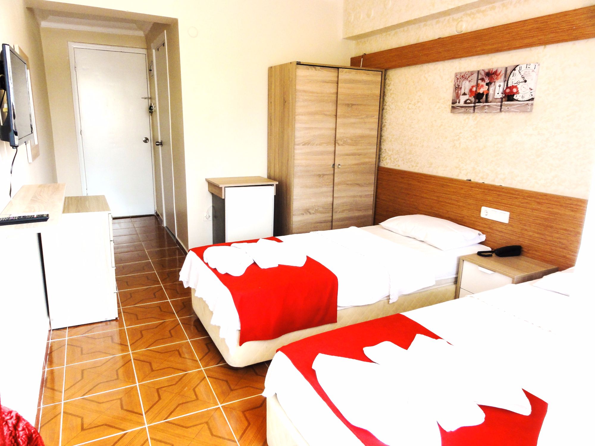 Air-conditioned room with 2 single beds has a satatellite Led TV, empty minibar, and a balcony. All rooms are Non smoking rooms.
